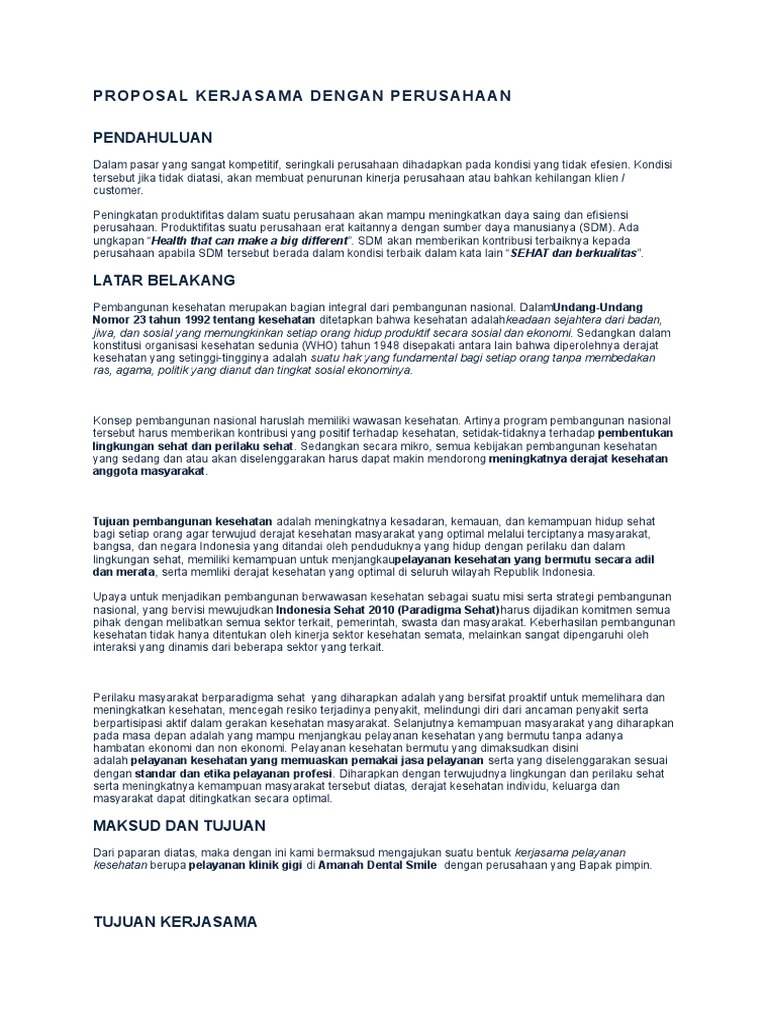 Contoh Proposal Kerjasama Klinik Gigi Dengan Perusahaan