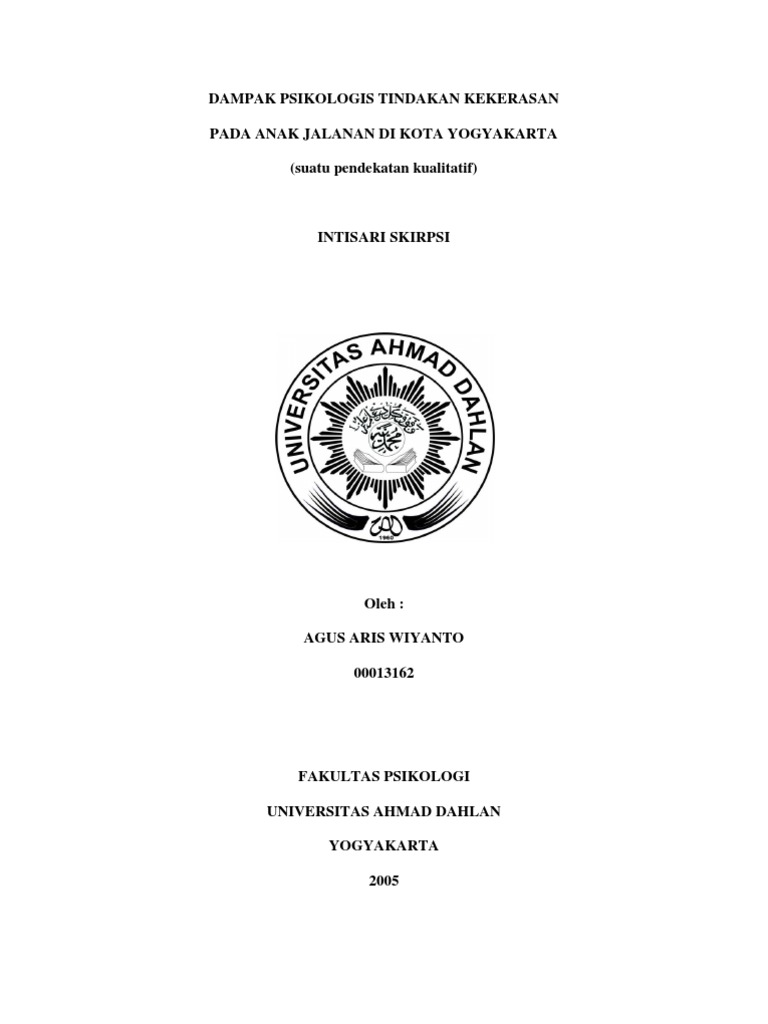 131000131622005 Skripsi Psikologi Uad Dampak Psikologis Tindakan Kekerasan Anak Jalanan
