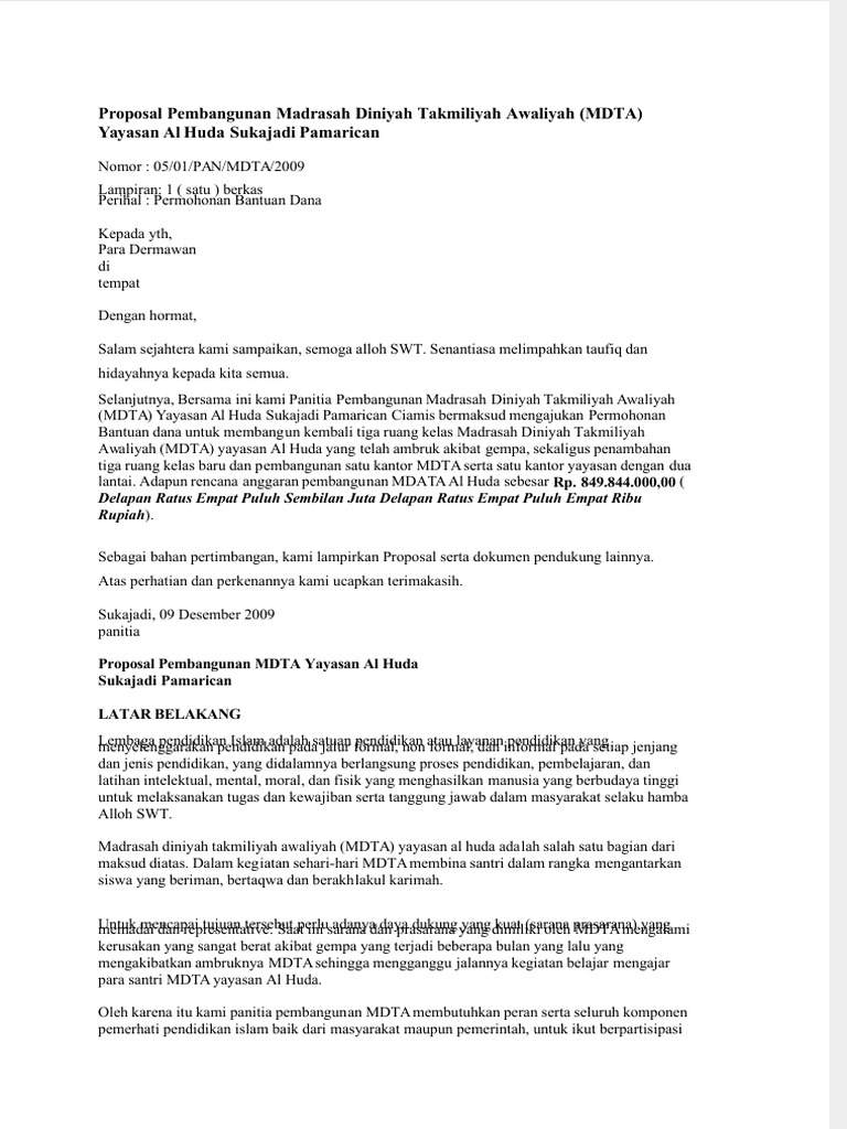 PDF) PROPOSAL PERMOHONAN BANTUAN DANA 2016 PEMBANGUNAN MADRASAH DINIYAH NURUL IMAN DUSUN CIKULU DESA SUKAHURIP KECAMATAN PANGANDARAN KABUPATEN CIAMIS | briga raden - Academia.edu