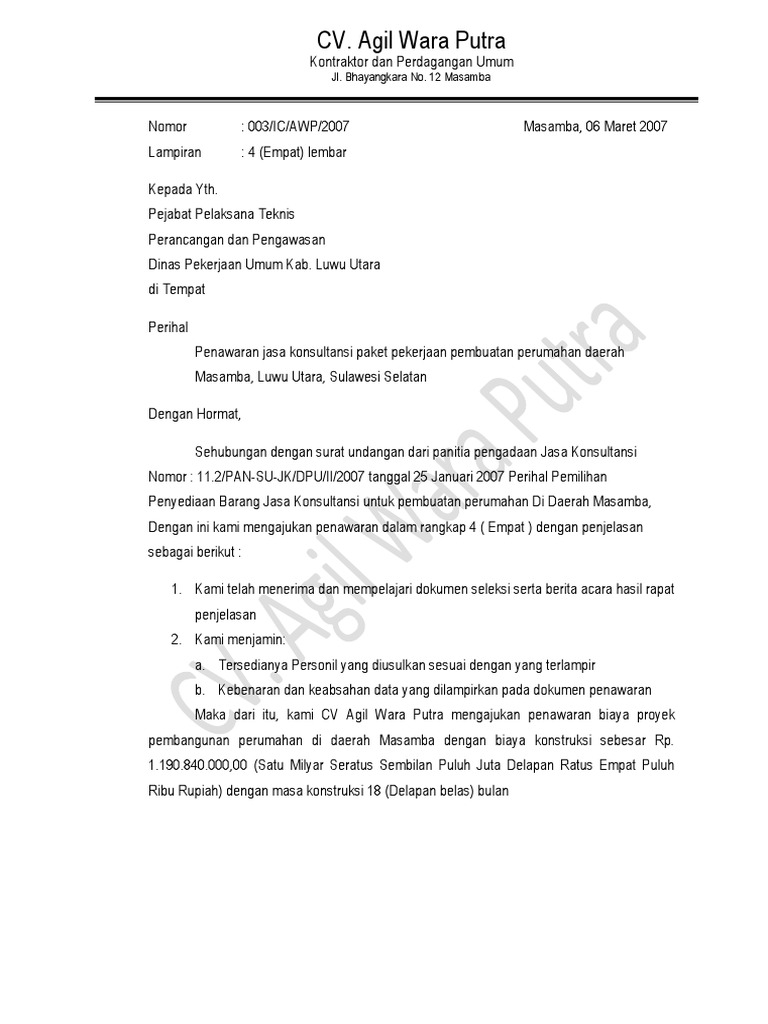 Contoh Surat Penawaran Jasa Konsultan Perencana - Kumpulan Surat Penting
