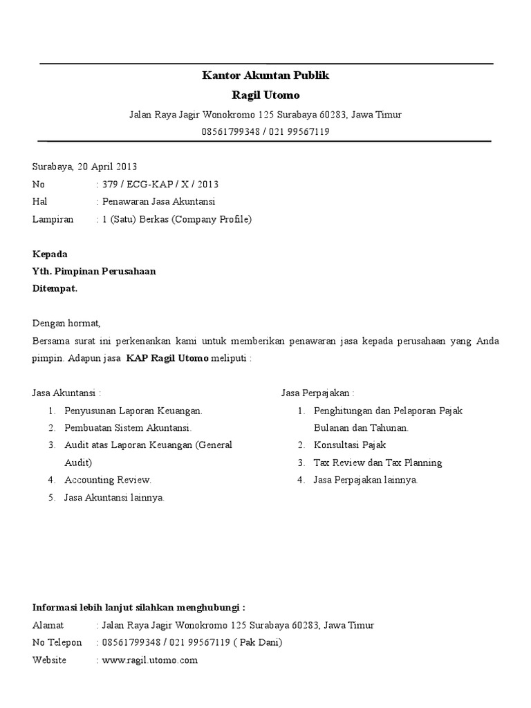 Contoh Surat Penawaran Jasa Konsultan Pajak - Contoh Seputar Surat