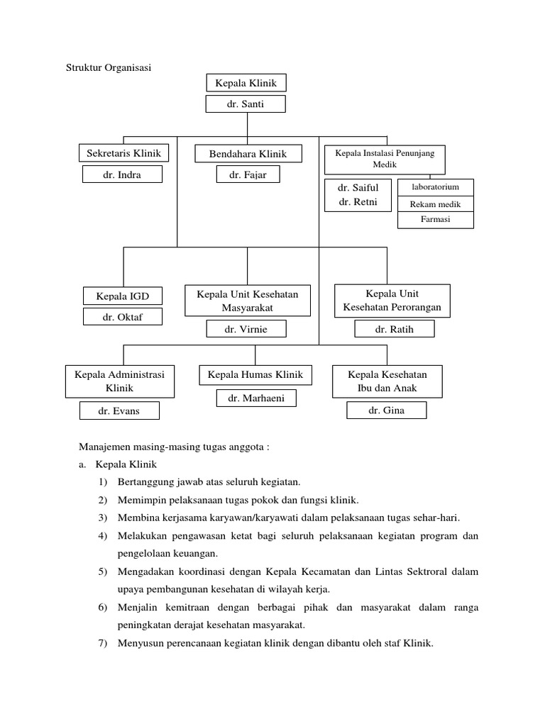 Struktur Organisasi Klinik Pratama Rawat Jalan - Berbagai Struktur