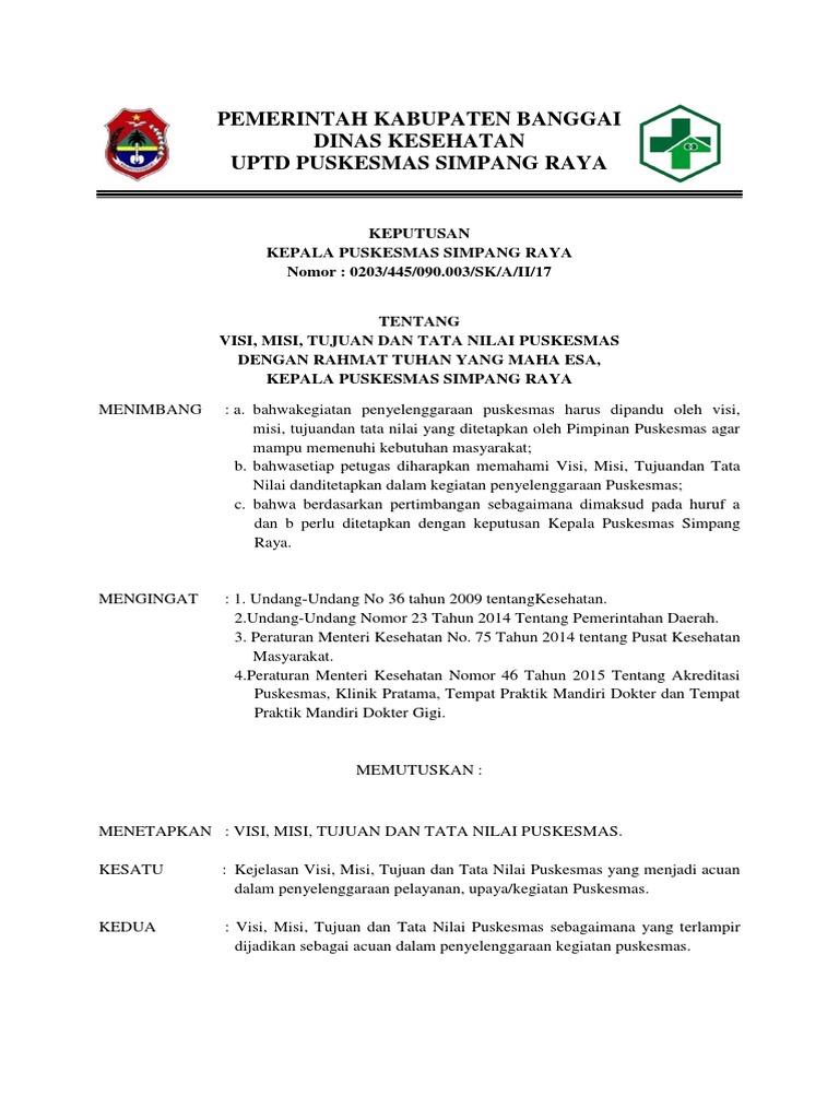 Contoh Sk Visi Misi Klinik Pratama - Guru Ilmu Sosial