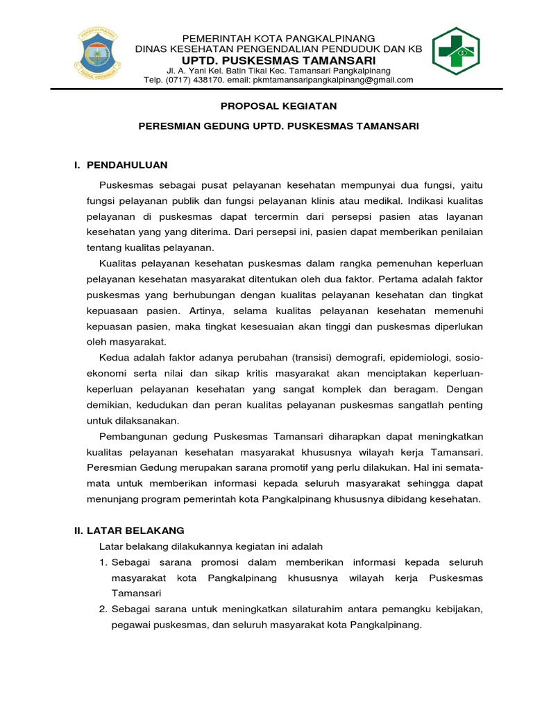 Proposal Peresmian Gedung Baru Puskesmas m.panas - PDF Free Download