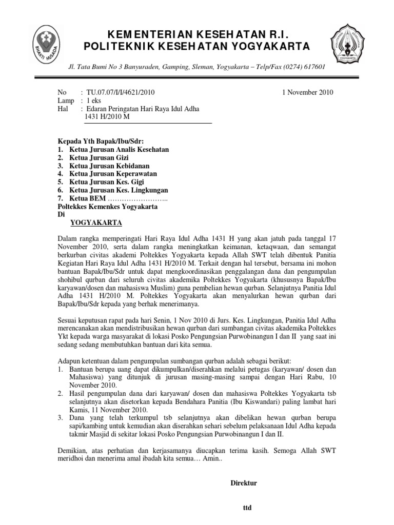 Contoh Surat Permohonan Bantuan Hewan Qurban - Contoh Seputar Surat