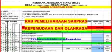 RAB Pemeliharaan Sarana dan Prasarana Kepemudaan dan Olahraga Milik Desa | FORMAT ADMINISTRASI DESA