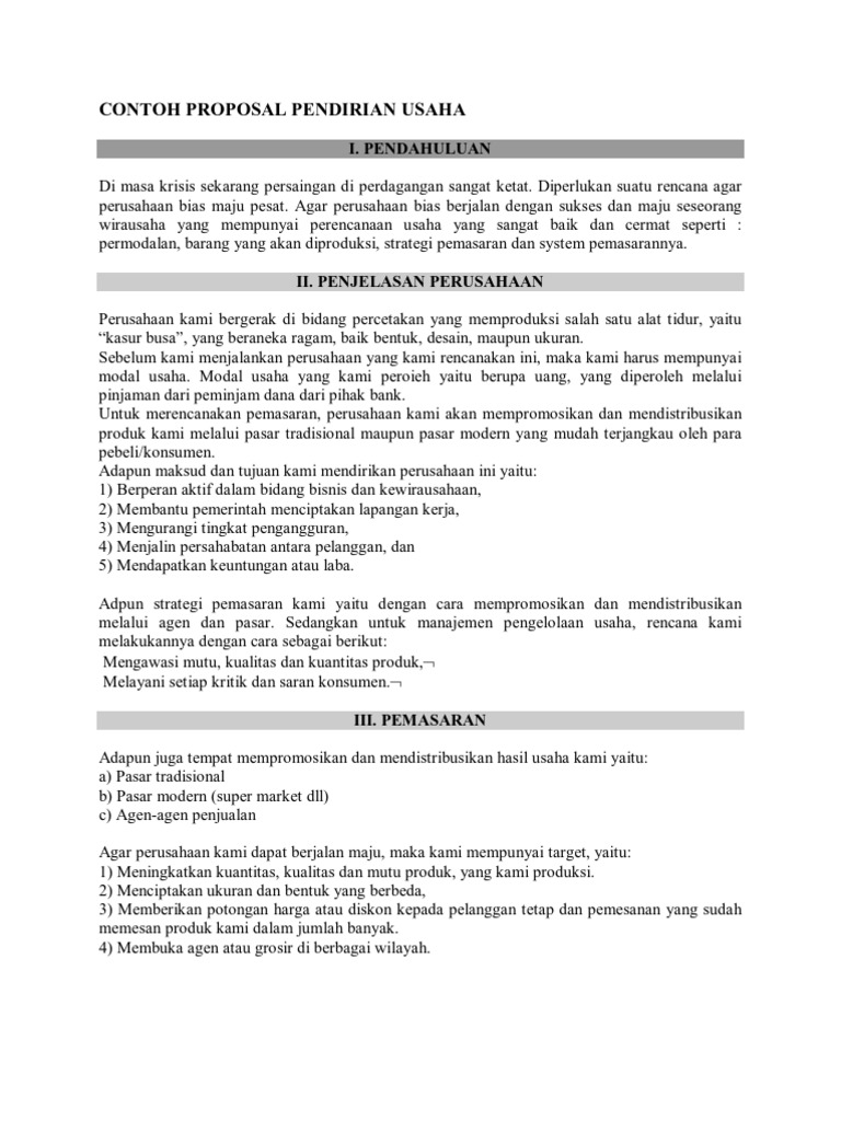 Contoh Proposal Usaha atau Rencana Bisnis | Proposal, Pengusaha, Jenis