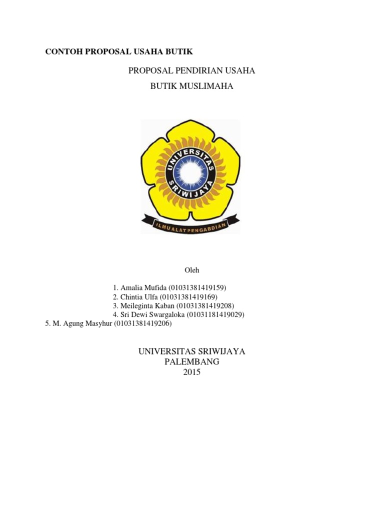 PROPOSAL PENDIRIAN USAHA BUTIK MUSLIMAHA UNIVERSITAS SRIWIJAYA PALEMBANG 2015