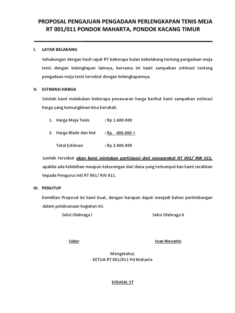 Kosngosan - Contoh Proposal Tenis Meja dan Lapangan… | Facebook