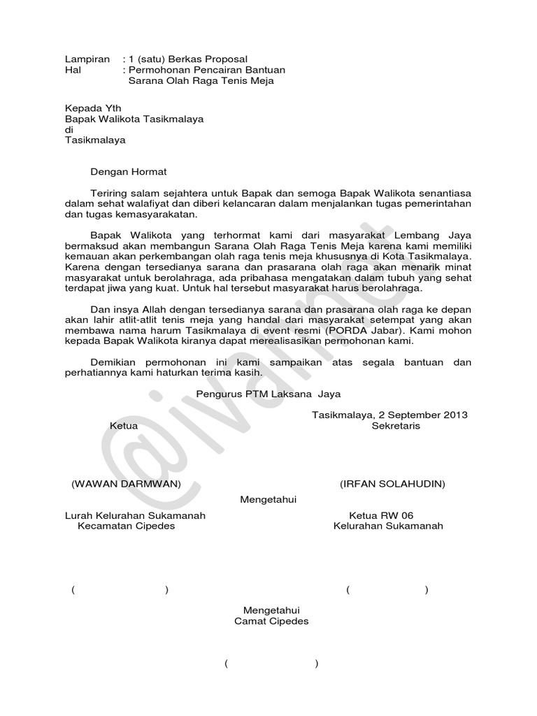 DOC) PROPOSAL PERMOHONAN BANTUAN SARANA DAN PRASARANA OLAHRAGA RT 04/19 | Erlisa Fitriani - Academia.edu
