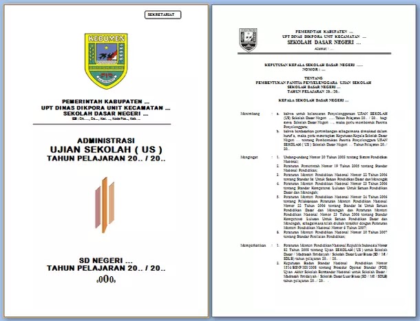 Contoh Administrasi Ujian Sekolah (US) SD - Berkas Edukasi