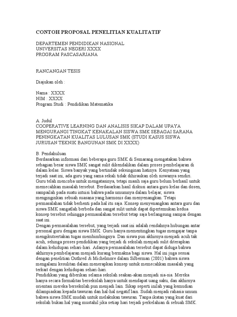 Contoh Proposal Penelitian Kualitatif