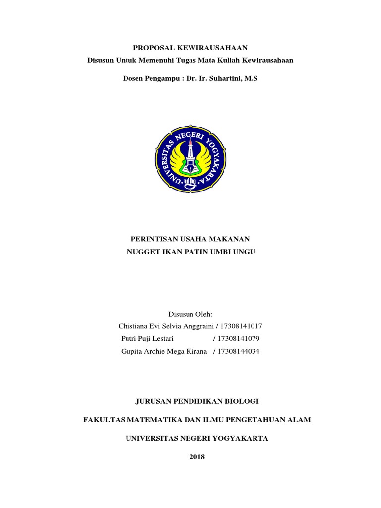 Proposal Usaha Nugget IKAN Patin - Teori Akuntansi 710047 - StuDocu
