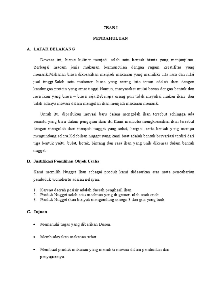 Contoh Proposal Usaha Nugget Ikan | Kumpulan Contoh Laporan Akhir Tahun