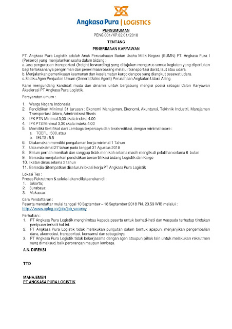 Lowongan Kerja PT Angkasa Pura Logistik | Lowongan Kerja Terbaru Lulusan SMA D3 dan S1 Semua Jurusan 2020