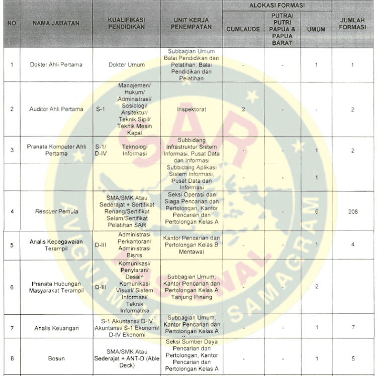 Formasi Lowongan CPNS BASARNAS 2019 Lulusan SMA D3 S1 - Tipssehatcantik.com