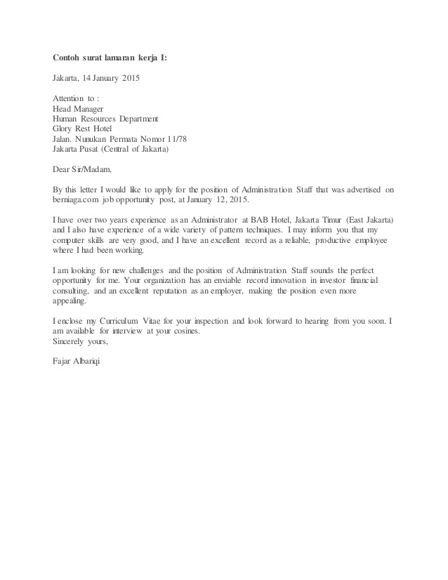 Contoh Surat Lamaran Kerja Di Hotel - Contoh Surat