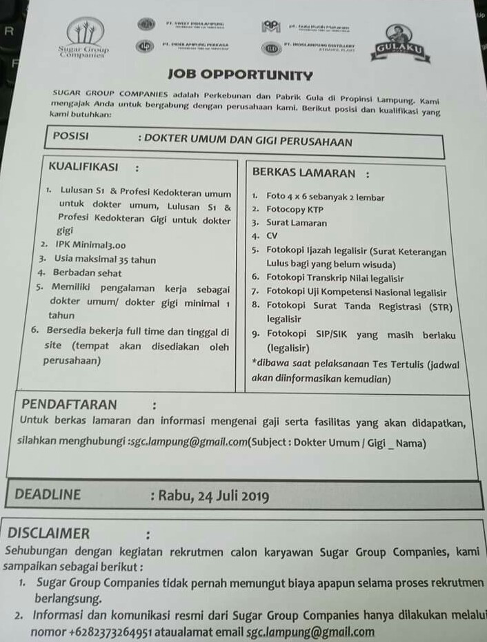 120+ Best Review Lowongan Kerja Sugar Group Companies (PT Gula Putih Mataram) Last Update 2020