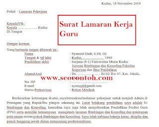 Contoh Surat Lamaran Kerja Guru Bimbingan Dan Konseling