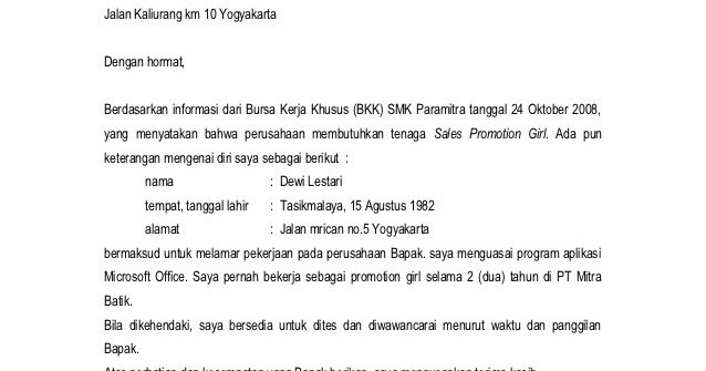 Contoh Surat Lamaran Kerja SPG - Contoh Surat Lamaran Kerja