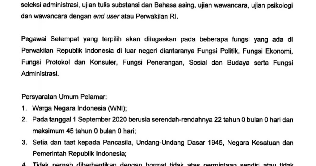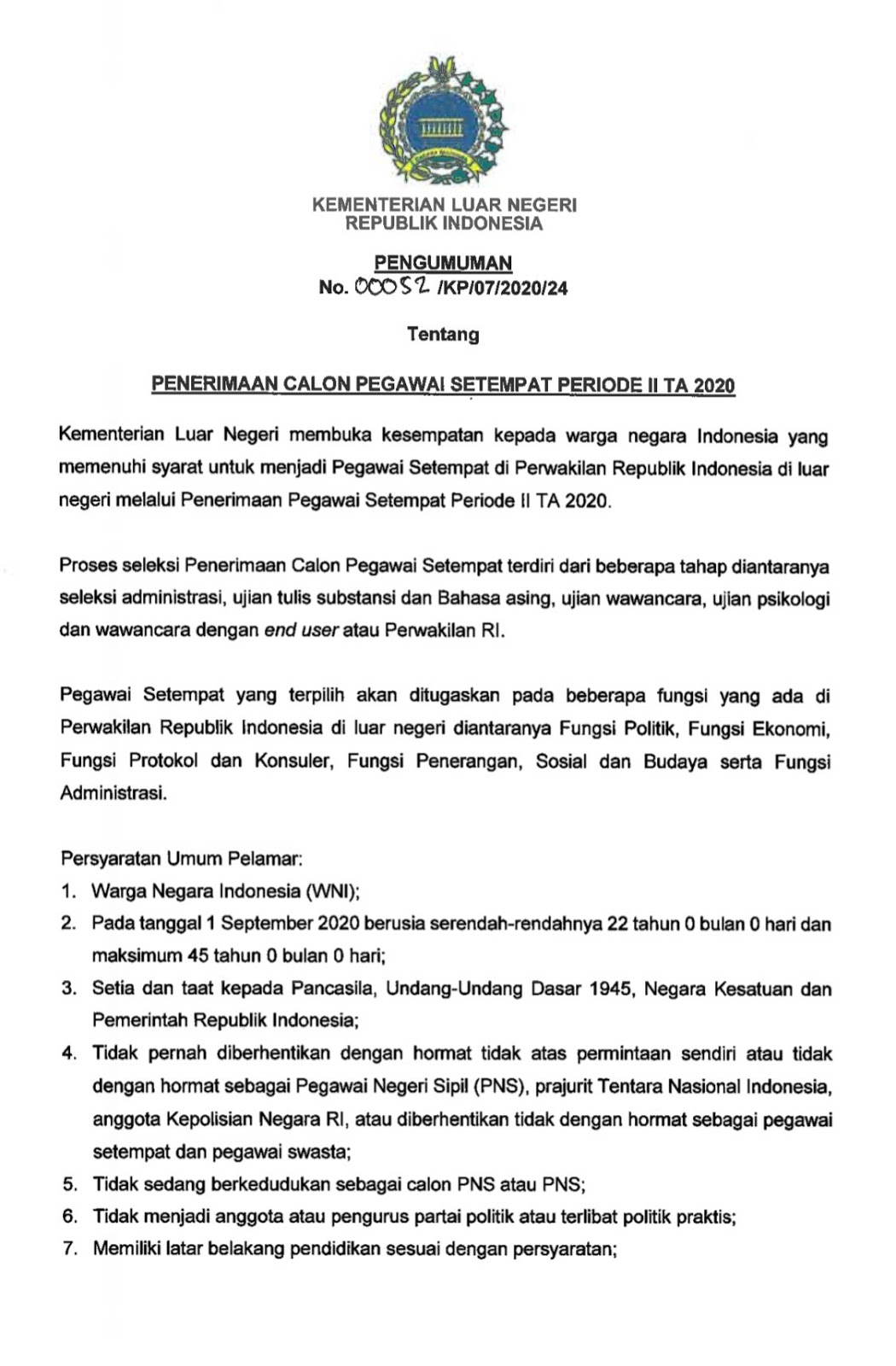Lowongan Kerja Pegawai Setempat Kementerian Luar Negeri Republik Indonesia Agustus 2020 - REKRUTMEN LOWONGAN KERJA BULAN OKTOBER 2020