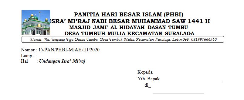 Contoh Surat Undangan Isra Mi'Raj Di Masjid