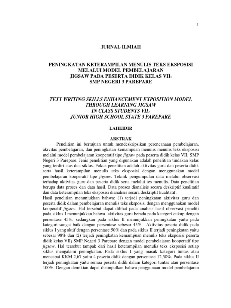 PDF) Pembelajaran Menulis Teks Eksposisi dengan Menggunakan Pendekatan Kooperatif Tipe Investigasi Kelompok di SMP