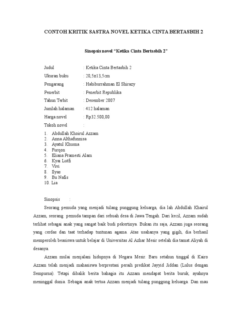 Contoh Kritik Sastra Novel