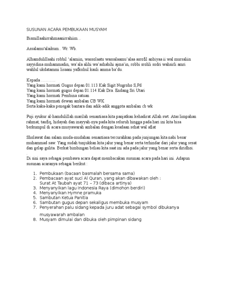 DOC) Teks mc musyawarah ambalan | Java Paris - Academia.edu