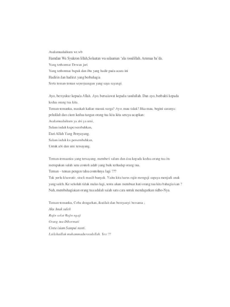 DOC) Contoh Teks Pidato Pildacil -Berbakti Kepada Orang Tua | Henny Rosa - Academia.edu