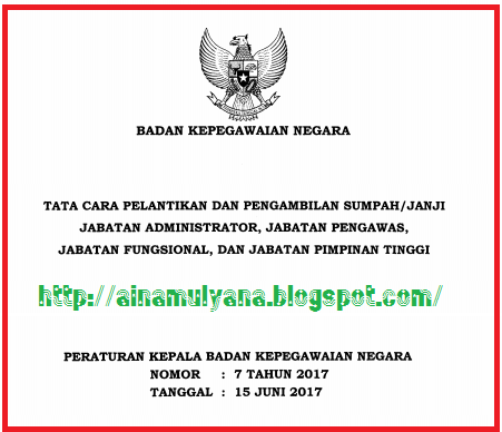 PERKA BKN NOMOR 7 TAHUN 2017 TATA CARA PELANTIKAN DAN PENGAMBILAN SUMPAH/JANJI JABATAN ADMINISTRATOR, JABATAN PENGAWAS, JABATAN FUNGSIONAL, DAN JABATAN PIMPINAN TINGGI INFO PENDIDIKAN KEAGAMAAN DAN MADRASAH INFO PENDIDIKAN ISLAM