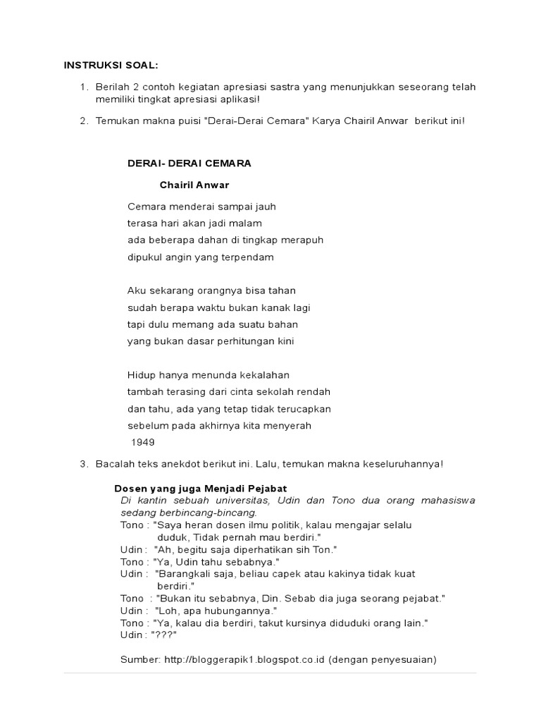 Puisi Karya Chairil Anwar Tentang Pendidikan - Guru Ilmu Sosial