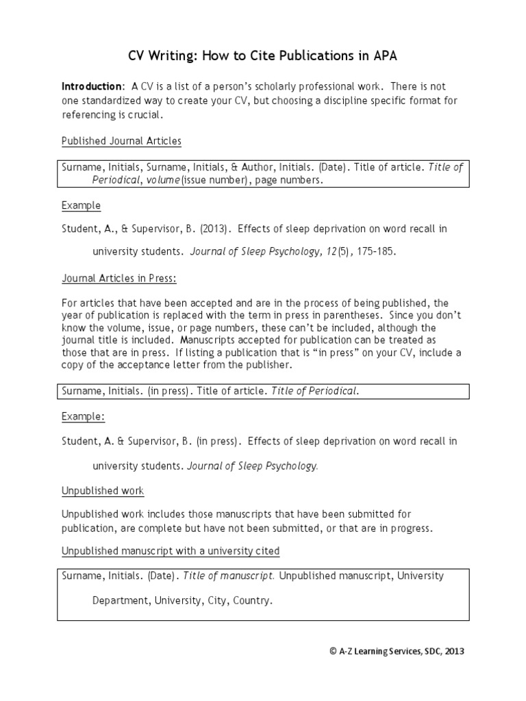 CV Writing: How to Cite Publications in APA | American Psychological Association | Cognition