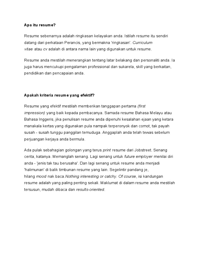 Penjelasan Lebih Padat Dan Padu Mengenai Apa Itu Resume, CV Dan Cover Letter