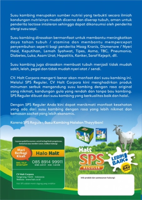 Halt SPS Reguler susu kambing (isi 10 sachet) promo Free masker kain. | Shopee Indonesia