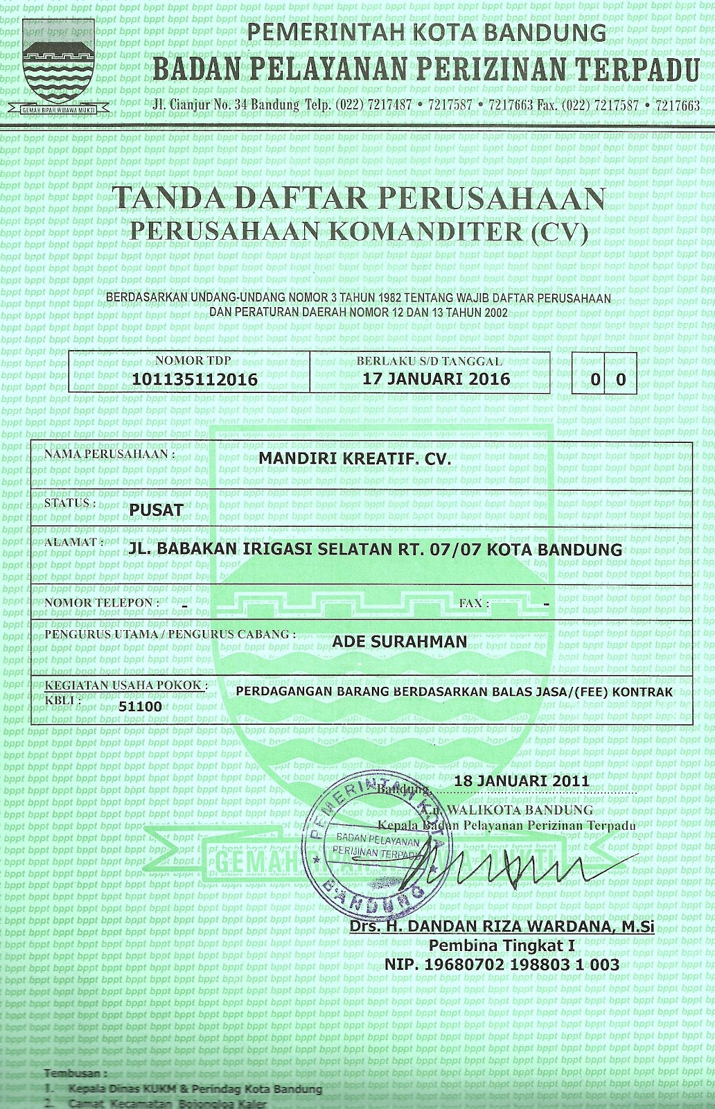 CV. Mandiri Kreatif: LEGALITAS CV. Mandiri Kreatif