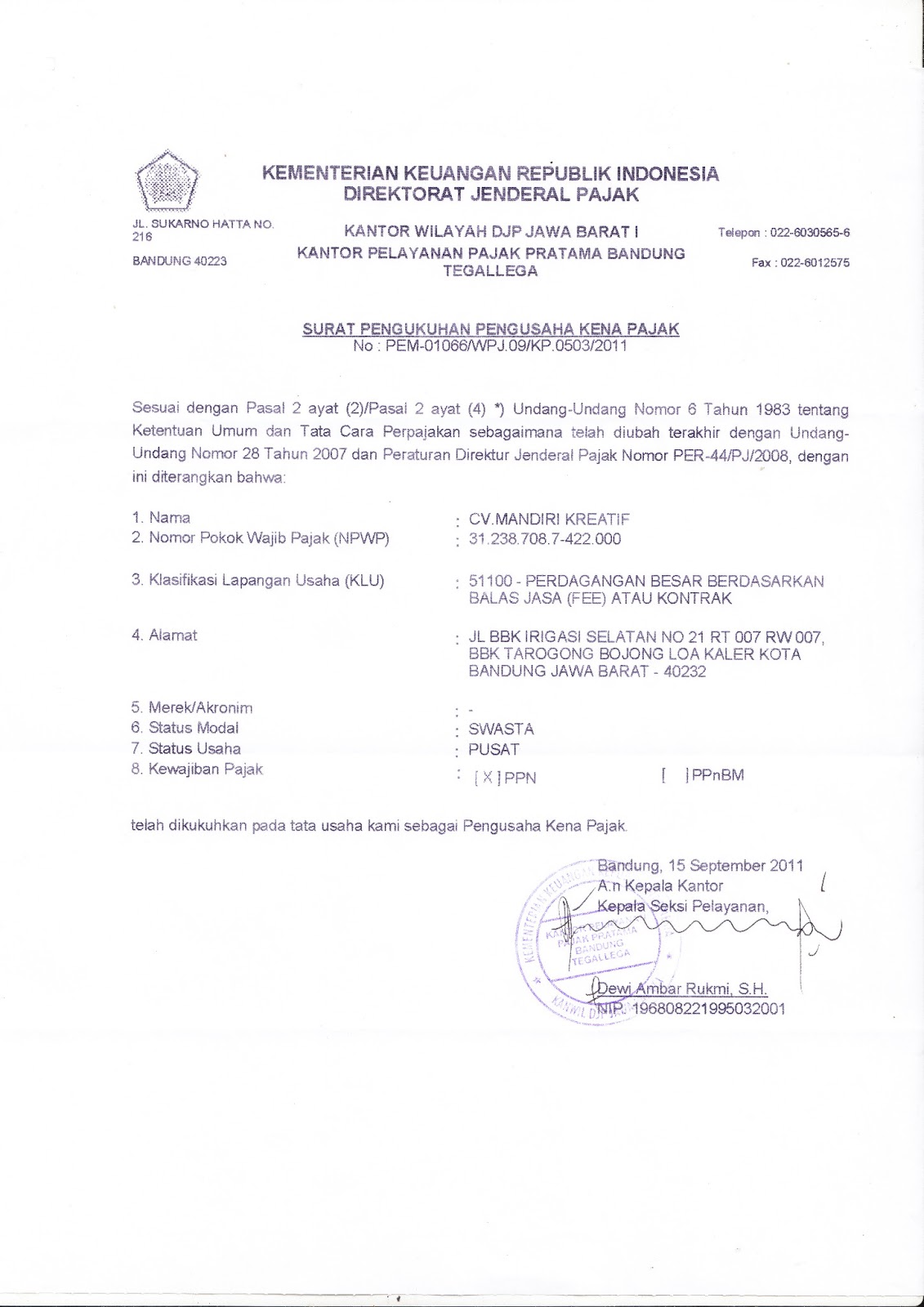 CV. Mandiri Kreatif: Berkas CV.MANDIRI KREATIF