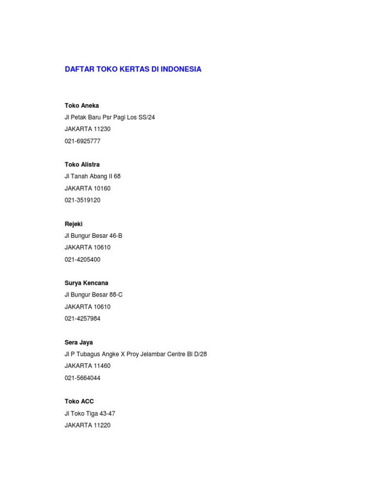 Daftar Toko Kertas