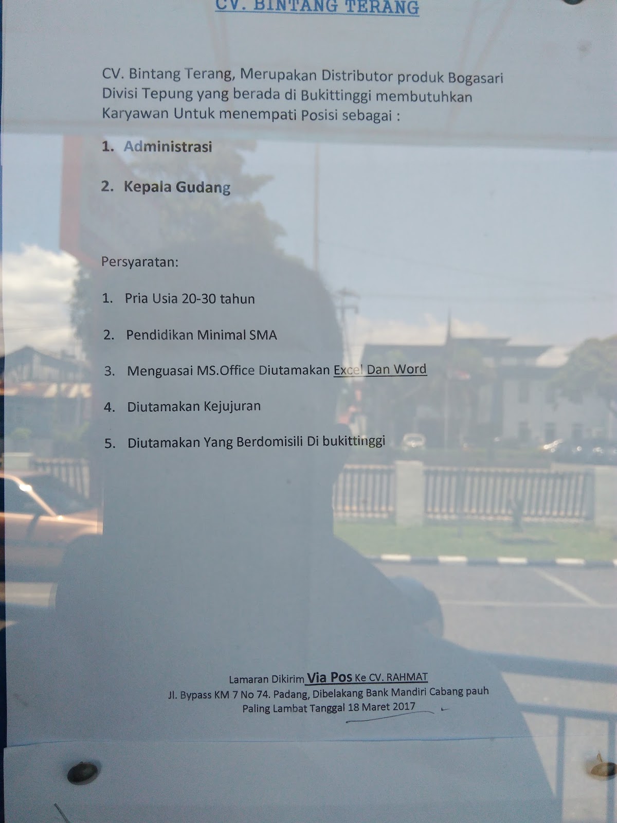 Lowongan Kerja Bukittinggi: CV. Bintang Terang - 2 Posisi Maret 2017 | Sumbar Jobs | Lowongan Kerja Sumatera Barat