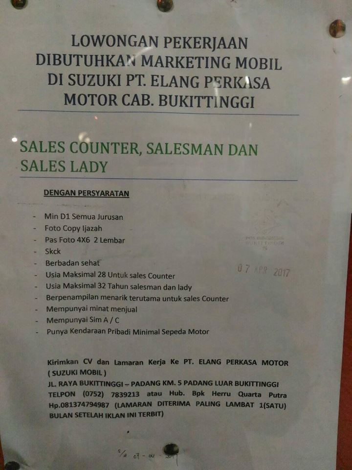 Lowongan Kerja Bukittinggi: PT. Elang Perkasa Maret 2017 | Sumbar Jobs | Lowongan Kerja Sumatera Barat