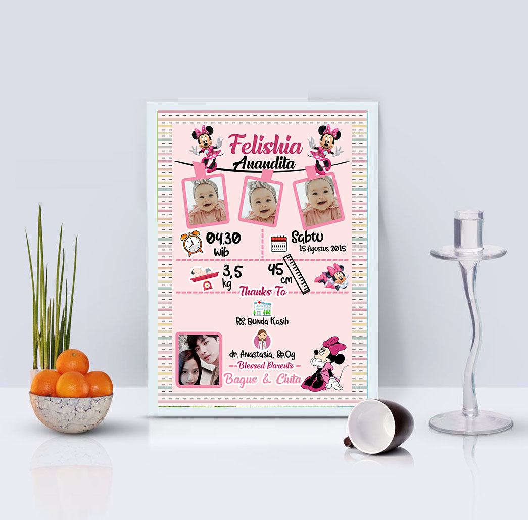 Biodata bayi plus frame Ukuran frame 20x30 cm atau 20x25 cm Bahan frame fiber syntetic Free Design Abadikan moment berharga denga… | Kado, Free design, Frame