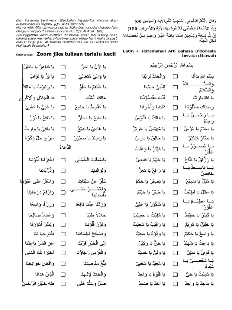 Nadhom Asmaul Husna Dalam Tulisan Arab Latin dan Terjemahnya - MI Kalimulyo