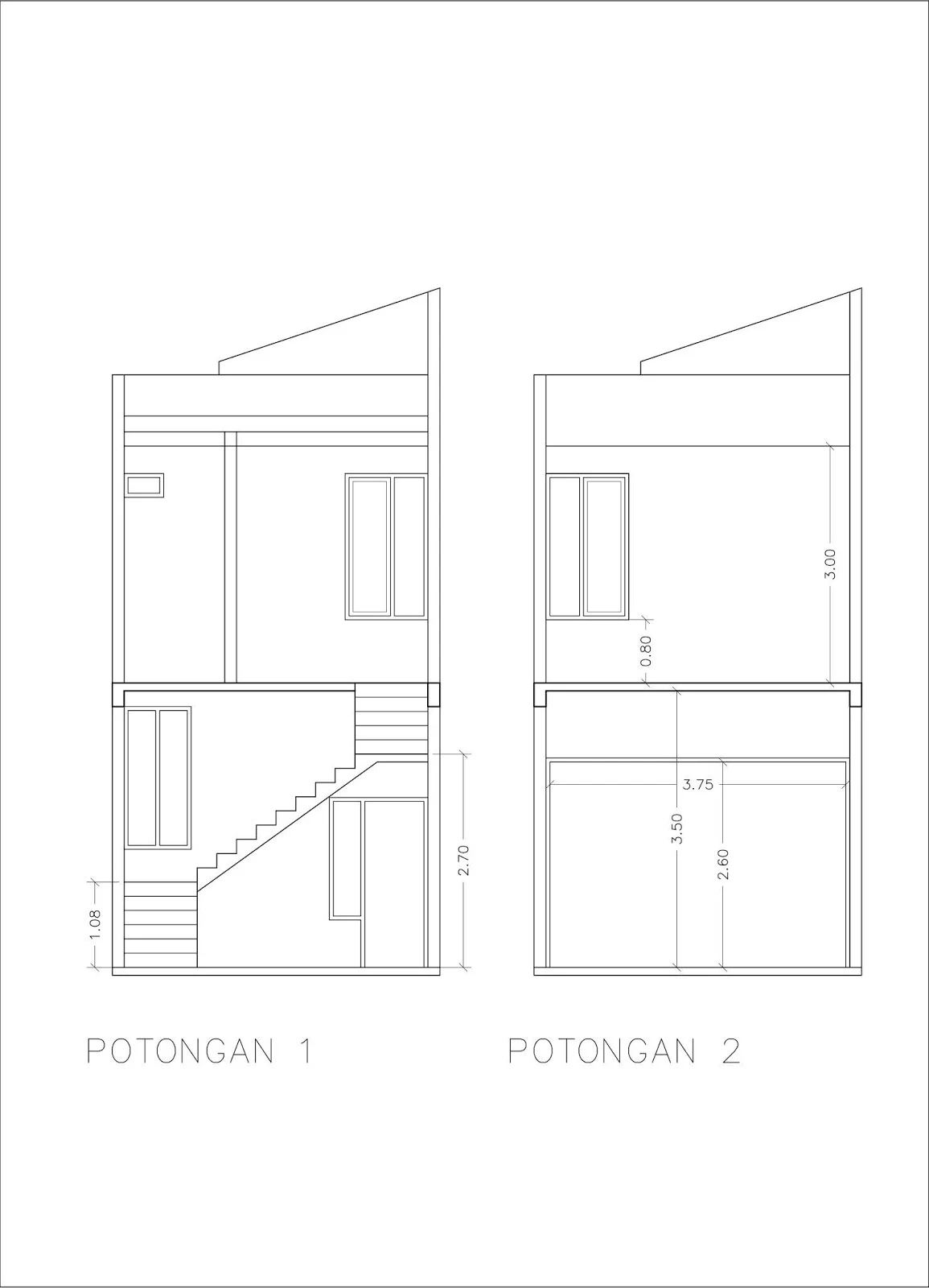 011 Potongan Prinsip AutoCAD dwg Rumah Minimalis 3 Lantai Lengkap
