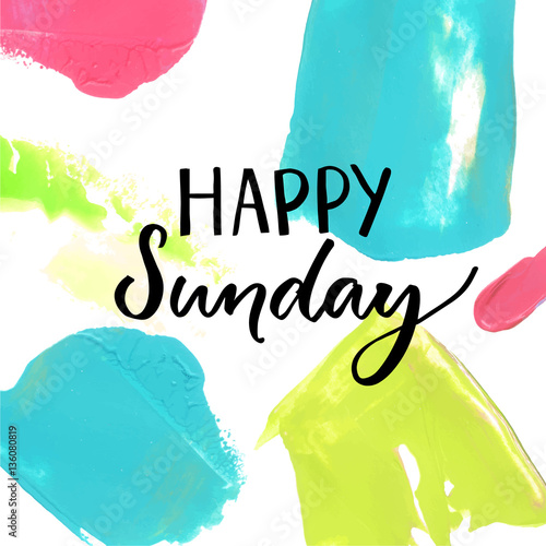 Happy Sunday banner. Vector typography at colorful artistic background with paint stains - Buy this stock vector and explore similar vectors at Adobe Stock | Adobe Stock