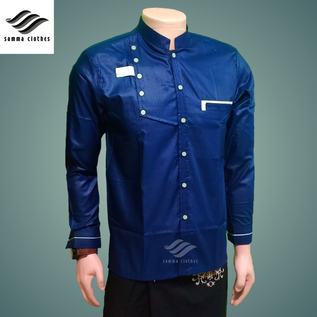Koko baju koko biru dongker navy seragam hadroh baju hadroh baju gus azmi baju koko gus azmi | Shopee Indonesia