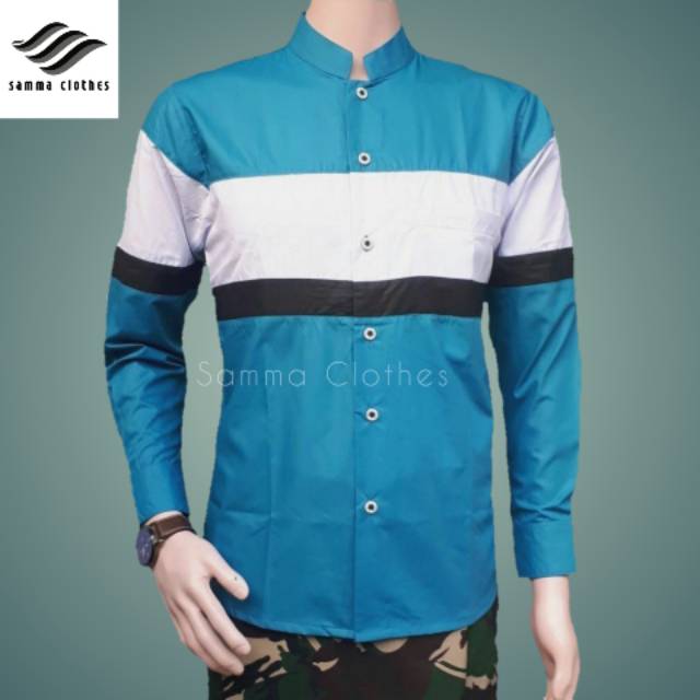 Baju Koko warna biru putih hitam koko seragam hadroh baju hadroh baju gus azmi baju koko gus azmi | Shopee Indonesia