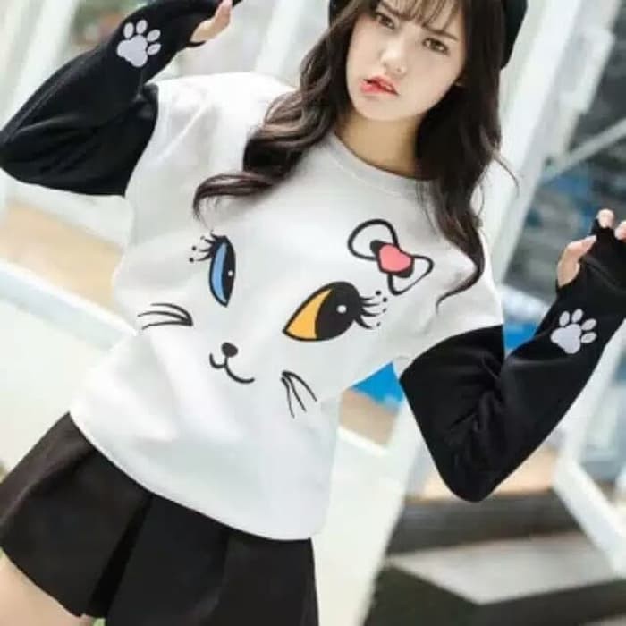 Baju sweater korea Blus-V-Neck-Lengan-Panjang-Casual-Gaya-Korea-Motif-Gambar-Print-untuk-WaniP1I8 | Shopee Indonesia