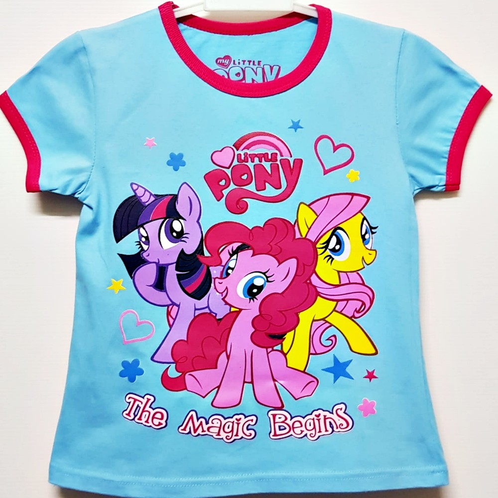 Baju kaos anak Perempuan usia 1-10 tahun motif kuda Pony Trio Biru Magic My Little Pony | Shopee Indonesia