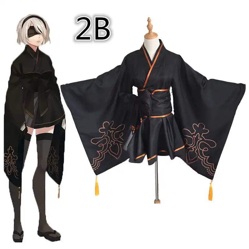 Permainan Nier Automata Gambar 2B 9S Fanart Kimono Baju Seragam Halloween Cosplay Kostum untuk Dewasa Pria Wanita Kimono| | - AliExpress