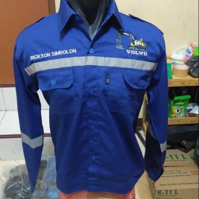 Seragam kerja pria murah bordir excavator alat berat/baju kerja pria gambar beko excavator volvo | Shopee Indonesia